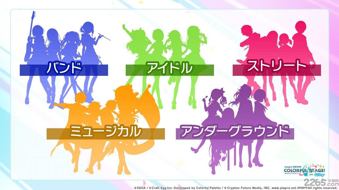 本作中有五组风格截然不同的新角色,每个角色组分别代表着不同的音乐风格。具体涵盖「乐团(バンド)」、「偶像(アイドル)」、「街头(ストリート)」、「音乐剧(ミュージカル)」以及「地下(アンダーグラウンド)」这五种。初音未来及其伙伴也会以他们的独特风格在「SEKAI」中亮相。