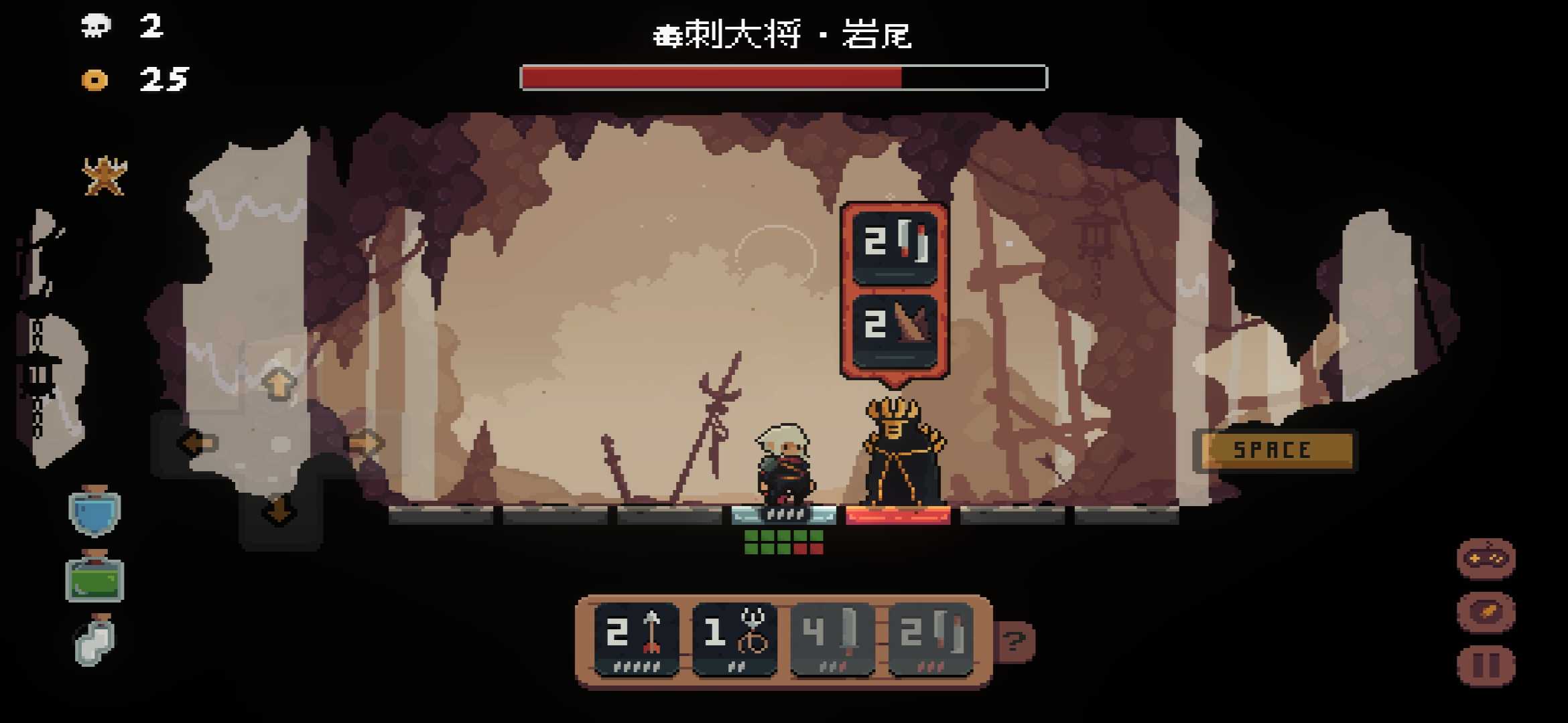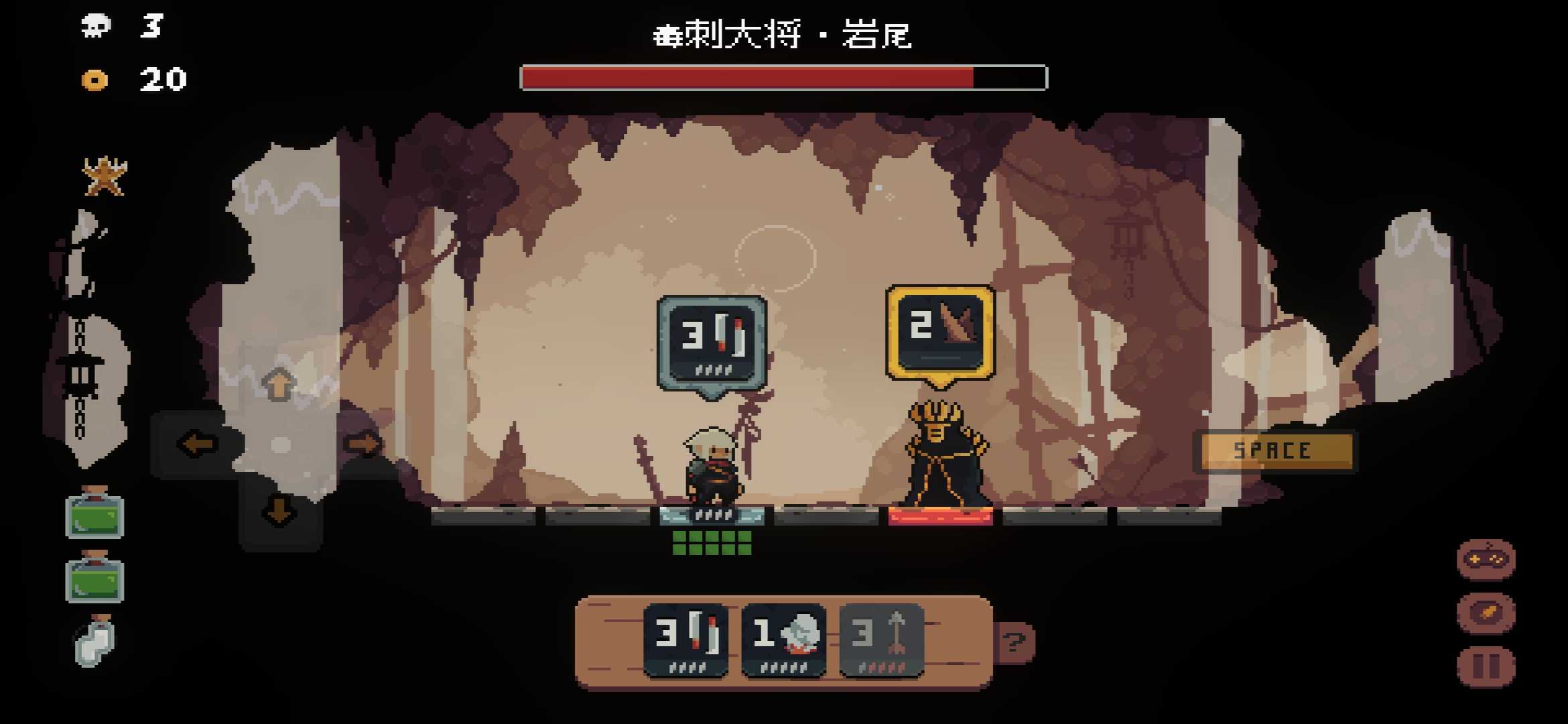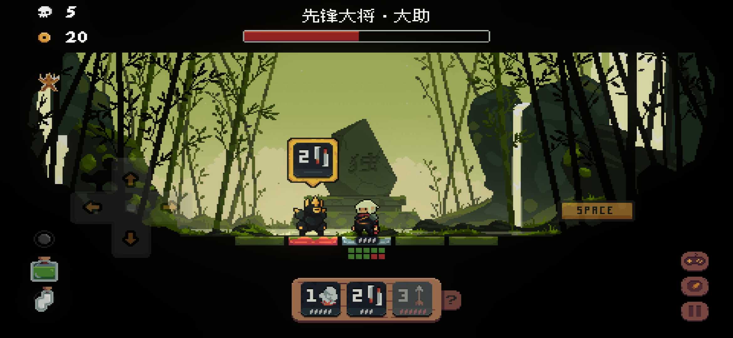 离开新手村的BOSS拥有四个技能: 1. 技能一:左右两侧各两格范围内造成两点伤害,使用此技能时需在一侧预留三个空格。BOSS攻击时会后退。 2. 技能二:前方和后方的第二格造成伤害,玩家需向前走一格或后退躲避。 3. 技能三:前方两格范围内造成两点伤害,攻击时BOSS会在攻击范围内后退或在前一格与玩家换位。 4. 技能四:召唤一只小怪。