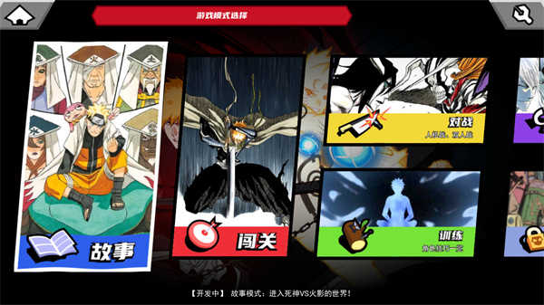 1、下载并安装“真死神VS火影绊”手游后,进入游戏即可选择多种不同的游戏模式。