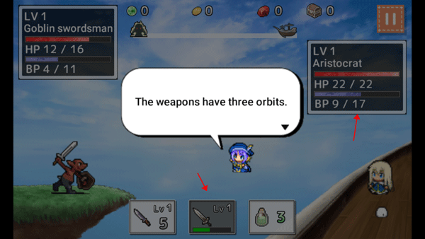 4、游戏的中间有三个武器和装备,第一个是小刀,第二个是一把剑,第三个是能力补给。