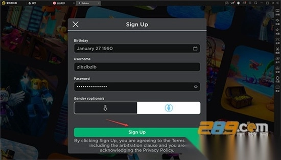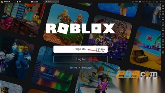 1. 当进入roblox游戏之后,点击进行账号注册。