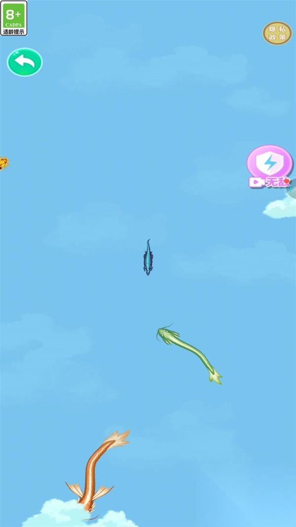 1. 驱使小龙于天际游动,主动向同类或怪物靠近,接触后实现吞噬,以此积累成长进度,满足进化条件。