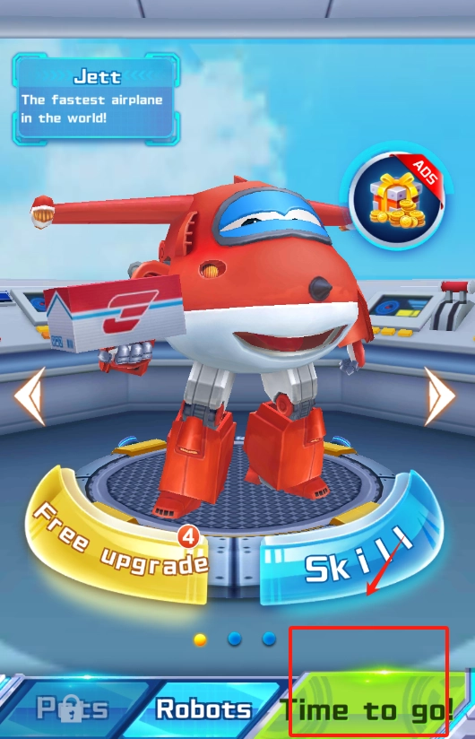 2、选角色升级技能,还能领免费道具,底部选宠物或机器人。