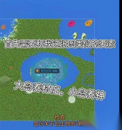 1、首先需要有一个和图中类似的地图,大岛养村庄,小岛养神。