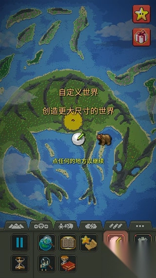 游戏的玩法也非常的简单,只需在地图上进行放置即可创造新的生命,丰富的生物种类随你选择,赋予它们独有的特性,你可以演化山川,也可以汇聚湖泊,让这个世界看起来更加的充满生机。另外,worldbox除了创造生物,你还可以创造大陆和水域,还可以通过模拟各种自然灾害进行毁灭你的世界,包括陨石、火山、熔岩、龙卷风、喷泉等等,感兴趣的小伙伴快来下载体验吧!