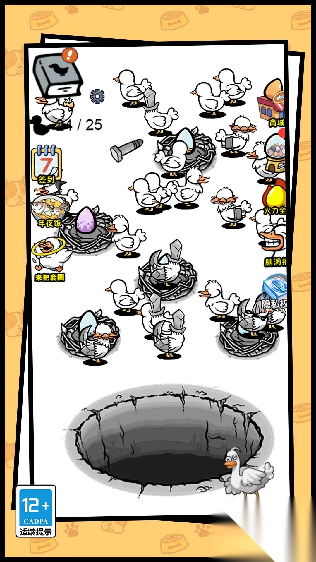 2、通过特殊培育方式,让小鸭进化成诡异品种,探索多样进化路线,收获惊喜。