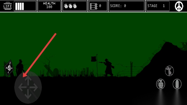 2、战斗中,可以应该拖动左侧方向键,控制士兵移动,避开障碍,快速靠近敌人,准备射击。