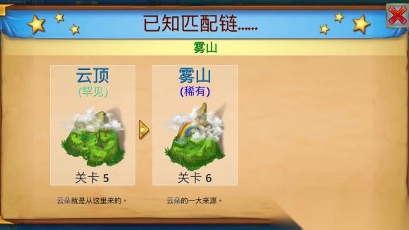 6、第六奇迹中,通常从山峰的关卡7起就能采集到云朵。云朵下雨能形成水洼,不过这种方式速度太慢。我一般是借助雾山和云顶来合成水洼(它们能自动产出云朵,更新速度快且数量多)。一般在将山峰合成到6、7级时,会自动出现云顶或雾山。