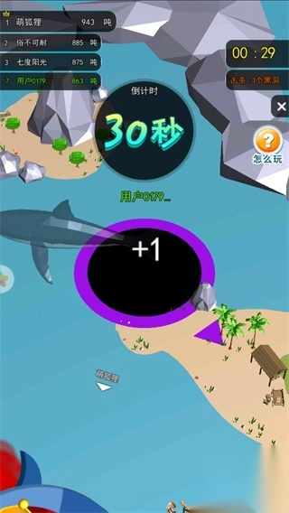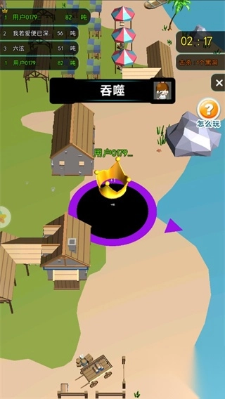 1、持续的去进行操纵你的黑洞吞噬各种各样物件,发展壮大你的容积,将全部的玩家们统统吞噬掉吧!