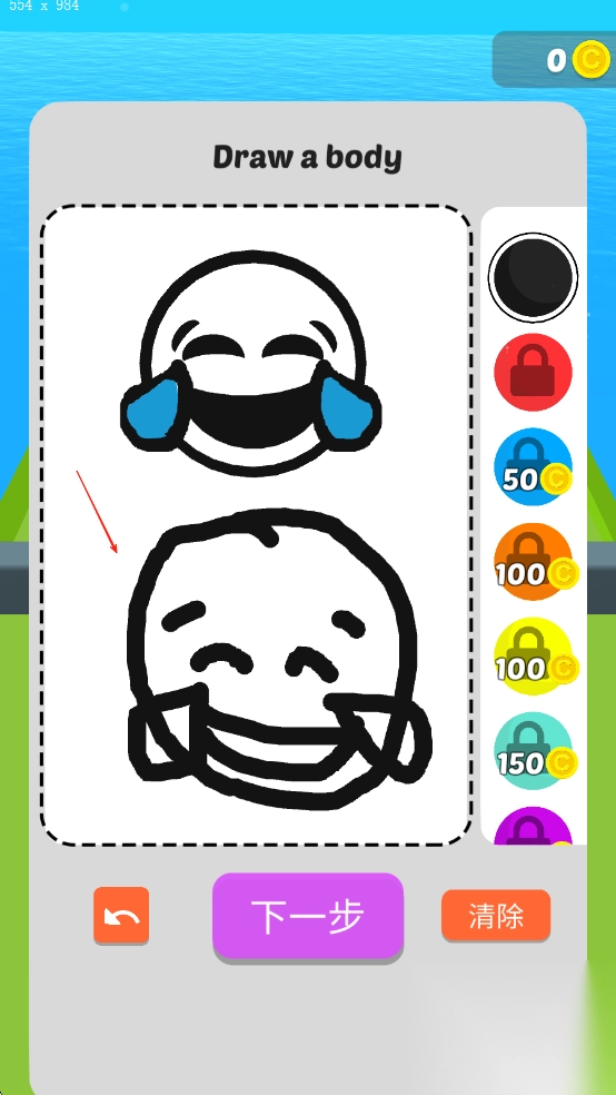 1. 进入游戏,在绘制界面通过滑动手指勾勒出英雄轮廓,系统会自动把线条转变为可操控角色,从而完成初始创建。