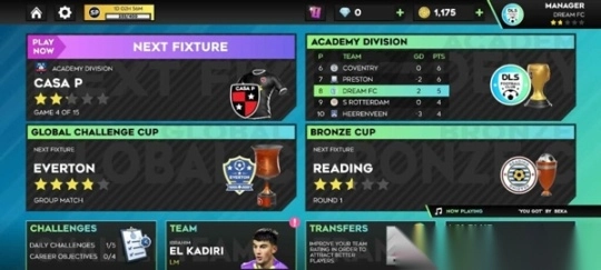 点击职业菜单后,玩家可以通过点击“下一场比赛”继续玩他们的下一场赛程。玩家还可以查看他们俱乐部在他们的学院赛、全球挑战杯和分区杯中的排名/排名,以及他们与每个分区和杯赛有关的下一场比赛。