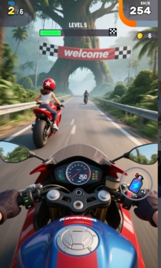 点燃引擎,于我们满溢速度与激情的摩托车赛车游戏里,感受极致的高速驰骋!全身心沉浸在这让人心跳急剧加速的动作天地,那令人赞叹不已的视觉呈现、栩栩如生的动态效果,以及充满挑战性的赛道,共同为竞技赛车赋予全新定义。