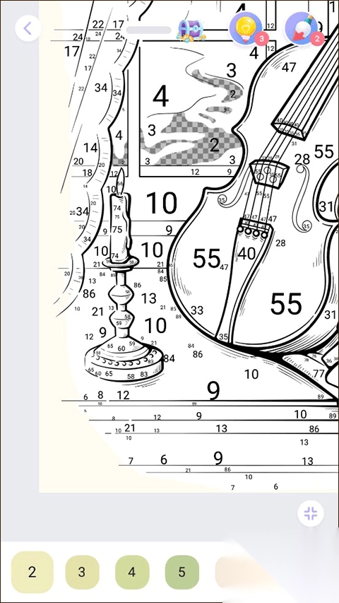 点击图片,随即进入填色界面,不少小伙伴一到这儿就懵了,不知该如何是好。其实,我们把图片放大,就能看到密密麻麻的数字了。