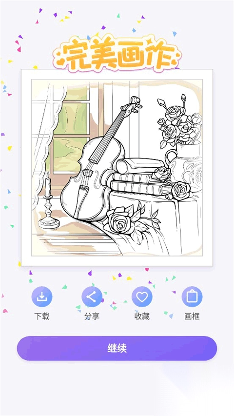 4、作品集:所有填完颜色的作品都会被保留,且支持分享各大平台