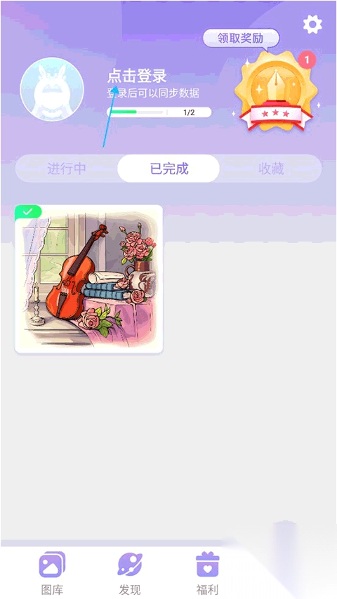 在这里可以看见小编已经完成的一幅作品,这个时候我们点击上面的登录。