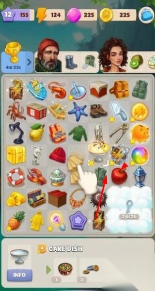 1. 进入游戏,在初始界面查看能够合并的物品,把两个一样的低级物品拖动到一块儿,使其合并为更高级的物品。