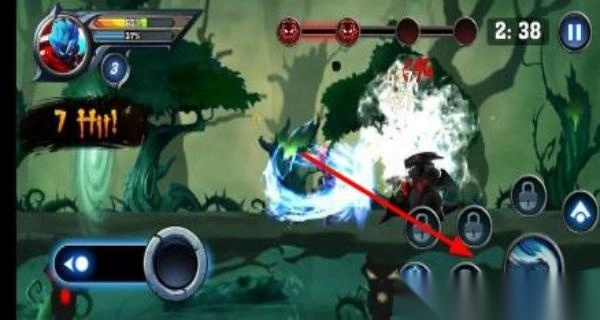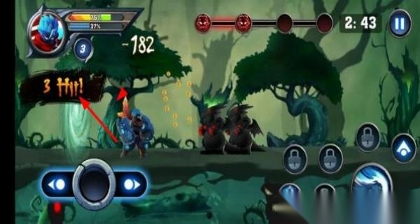 2、于对战界面中,可选择剧情关卡或者竞技模式。操控角色移动时,通过滑动屏幕来实现;想要释放组合技,则点击技能按钮,例如刺客运用“影袭 + 瞬移斩”的连招对对手进行压制。
