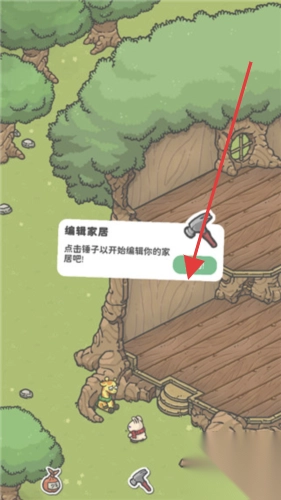 1. 当触发“编辑家居”的提示后,点击锤子图标,即可进入房屋编辑界面。在这里,你能够自由地布置装饰、拓展空间,从而打造出独一无二的专属树屋。