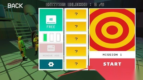 2. 挑选任务:点击“MISSION1”中的“START”,启动第一关。