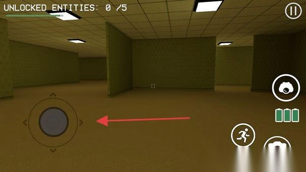 3、操控角色移动:通过左侧虚拟摇杆,实现角色在走廊场景中的移动,以此推动游戏进程。