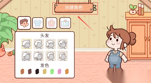 2、点击红框发型发色选项,自定义角色外观。
