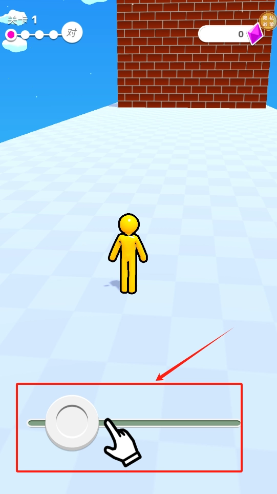 1. 找到带有圆盘的滑块并点击,接着拖动手形图标进行移动,使得黄色小人能够站到蓝白格子地面的指定地点。