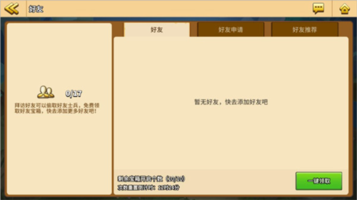 添加好友后,就能前往好友的城市逛逛,学习他们独特的布阵策略,从中汲取灵感。不仅如此,还能领取好友的宝箱,甚至顺便带走几名士兵,让他们助力你战斗、帮你顺利通关。分享,其实就是一种关爱!