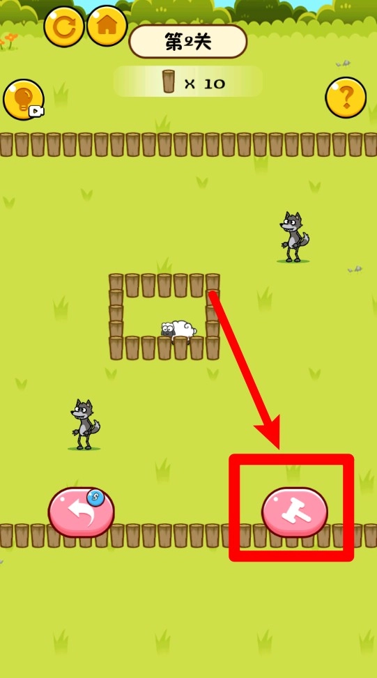2.点击放置按钮可建造木桩围栏,用来阻挡狼群靠近羊群,保护羊群安全是主要目标。
