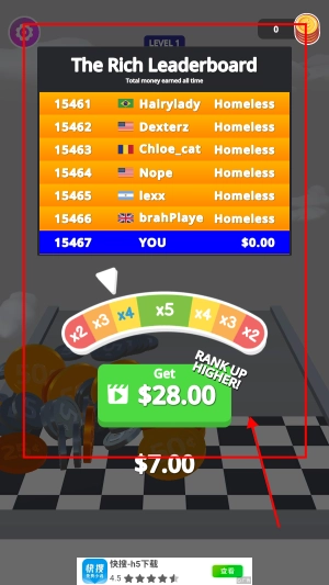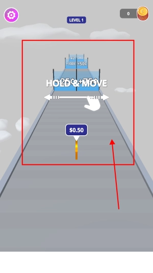 2、移动方向让钱币进行跑酷。
