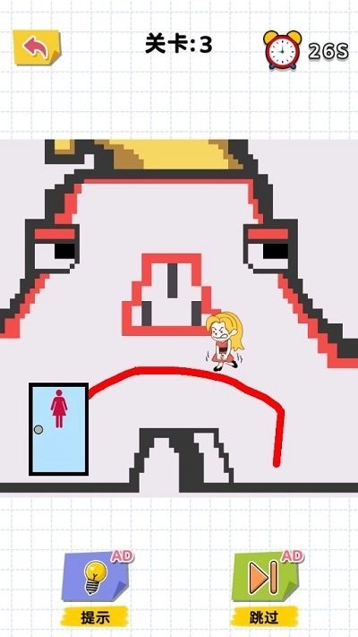 1. 基础模式规定需在限定区域内绘制连续的路径,以此引导角色躲开障碍物,平稳地到达卫生间这一目标位置。