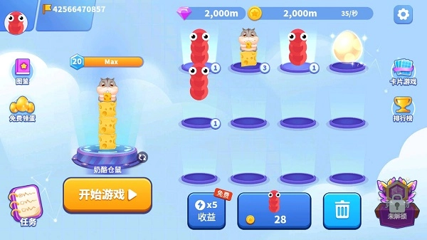 在对局之外的主界面里,游戏额外增添了一个3行4列的操作台。玩家只要花费金币,就能购买新的小蛇,把相同类型的小蛇进行拖动,就可以实现合成升级。