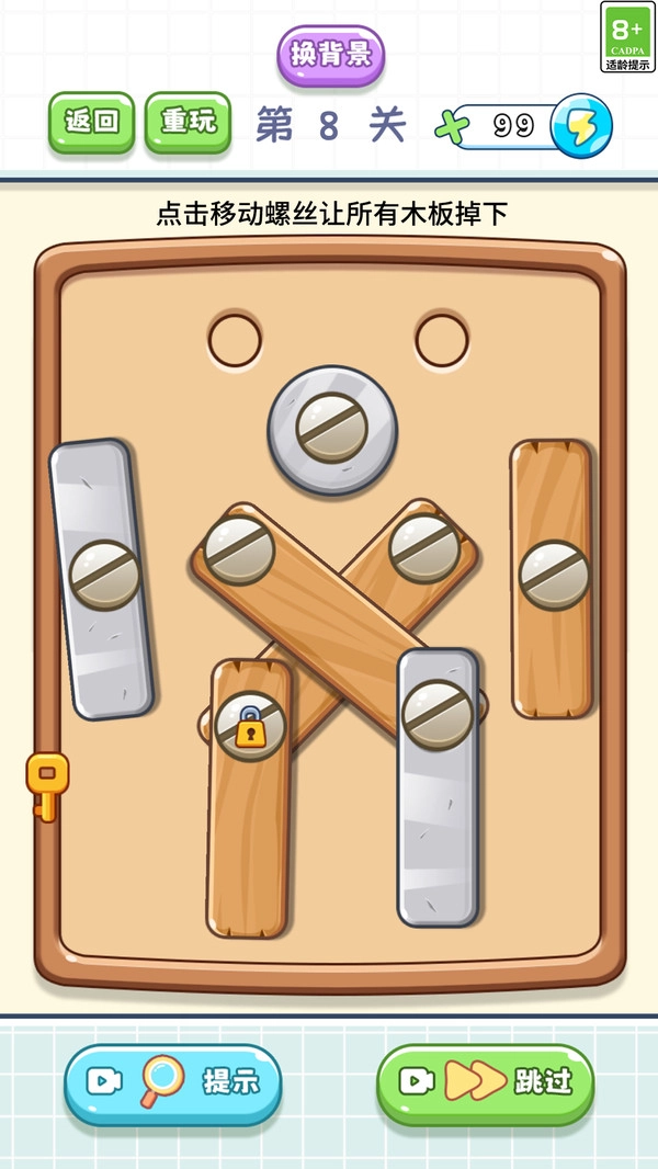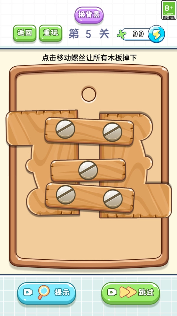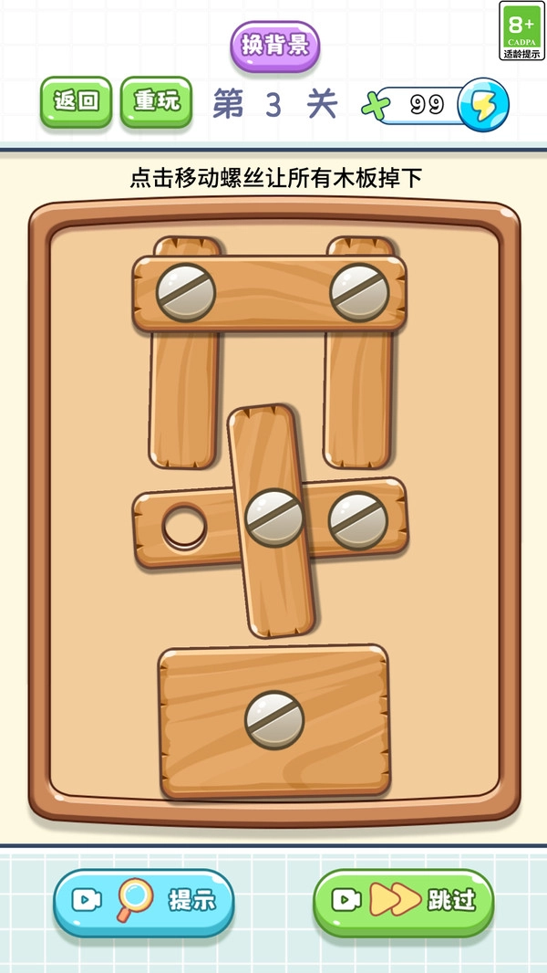 疯狂打螺丝闯关游戏是一款极富创意的物理解谜类游戏。在游戏里,玩家将化身为工程师,需要把场景中的每一颗螺丝都拆除,从而将复杂的木块与铁板所构成的结构完全分解。这过程中,玩家得仔细观察结构的薄弱之处,并精心规划拆除的先后顺序。因为只要稍有疏忽,就可能致使结构坍塌或者陷入卡关的困境。而游戏精巧的关卡设定以及逼真的物理效果,使得每一次拆除操作都充满了挑战与乐趣。