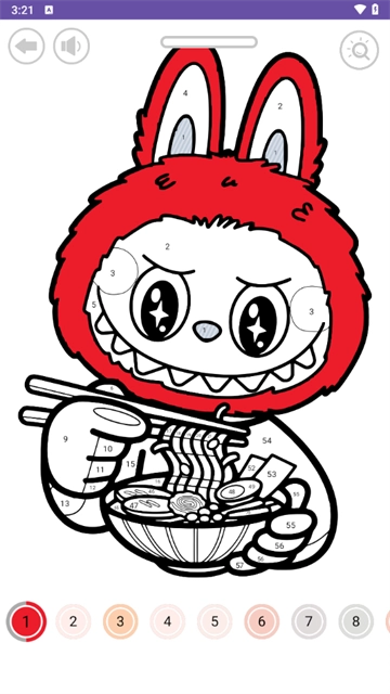 拉布布数字填色游戏手机版,是一款融合创造力与休闲乐趣的收集填色游戏。在游戏里,玩家能够依据数据提示,为可爱的拉布布上色,使角色变得更加生动鲜活,同时还能挖掘自身的艺术潜力。该游戏画风整体简洁明了,玩法操作极为简单,各个年龄段的玩家都能轻松驾驭。