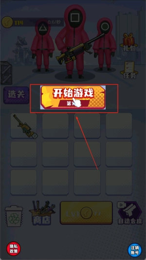 1、进入游戏后,整理装备完成后,点击开始游戏,进入要玩的关卡。