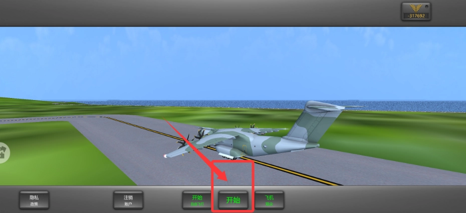 1、在游戏界面中,点击下方“开始”按钮,进入飞机的驾驶操作。
