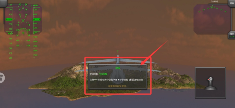 3、场景加载完成后,按提示了解飞行操作,准备操控飞机完成训练任务。