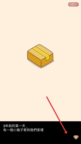 1、推进剧情:点击屏幕底部三角按钮,推进“小箱子”故事流程。