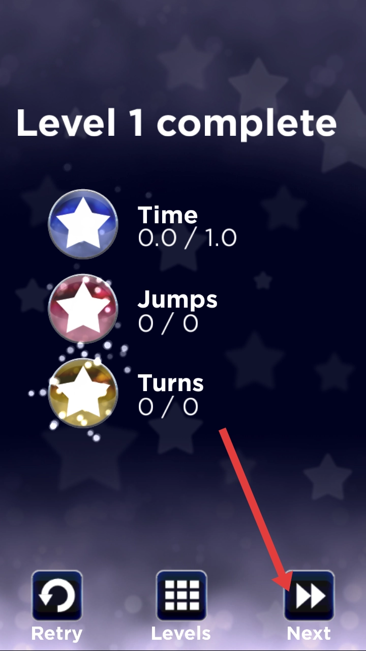 3、当Level1完成后,在结算界面点击箭头指向的【Next】按钮,解锁后续关卡,挑战更复杂的霓虹空间谜题与布局。