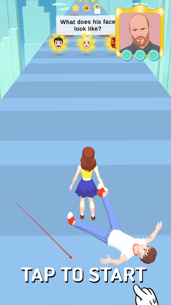 1、开始第一关跑酷,滑动屏幕控制角色移动,根据右上角的特征,选择符合理想型的选项。