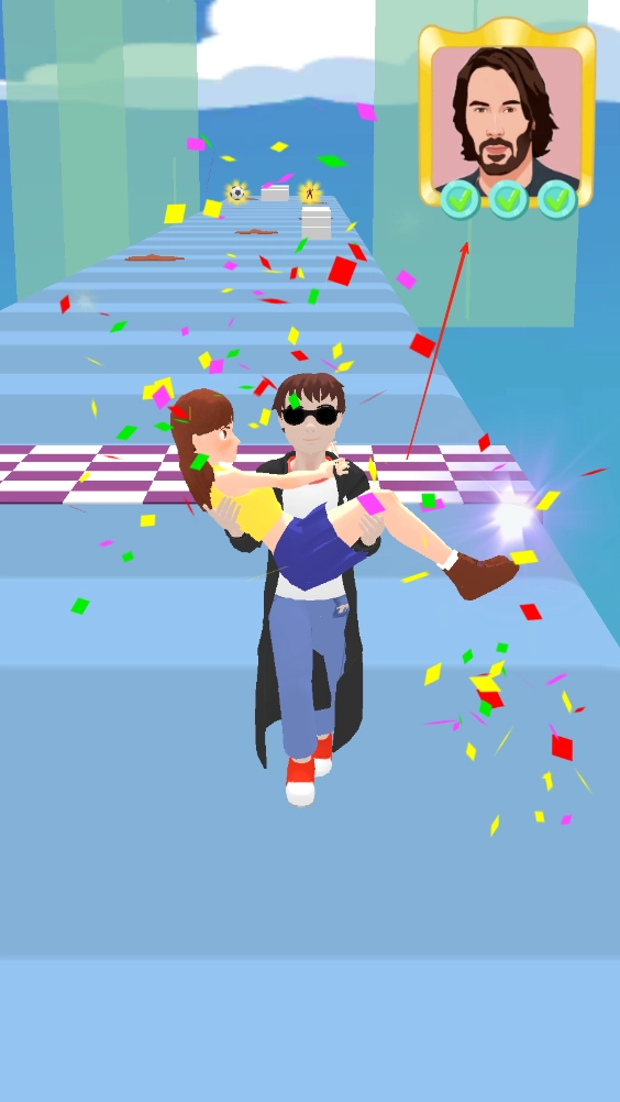1、跑酷与装扮的融合:把跑酷闯关和装扮玩法相融合,玩家于跑酷途中收集道具来装扮“男朋友”。这两种玩法紧密相连,使得闯关既具备跑酷的紧张刺激感,又拥有装扮带来的趣味。