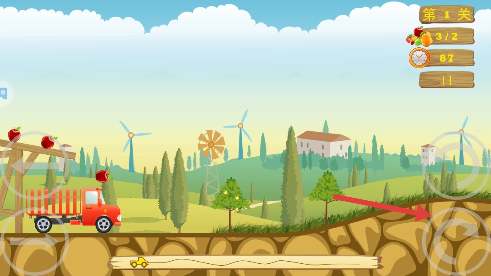 2、装载完毕后启程,借助方向盘图标操控方向,利用油门与刹车按钮调整速度,依据实际路况及时减速躲避,留意货物的稳定性以防掉落。