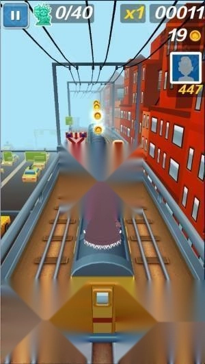 2、与《地铁跑酷》类似,后方会有一位警察大叔追赶你,你可以通过左右上下操作来控制角色进行躲避移动。