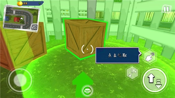 5、走到此处的围栏旁,看到那里的板箱后,上前点击领取。