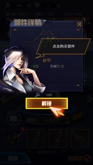 4、接下来,我们为机甲选购部件,点击即可查看属性并进行购买。