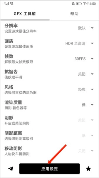 答:首先在工具箱将参数设置成上述状态,待工具箱应用设定完成后进入游戏。接着,在游戏设置中,手动调整那些工具箱未能妥善修改的设定,例如将画质从高清改为最流畅。