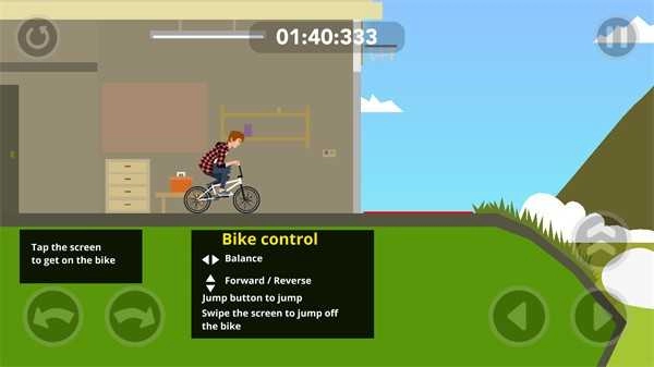 2、挑选一个初始关卡开启挑战,在场景中操控角色慢慢前进,找到自行车后便可开始骑行。
