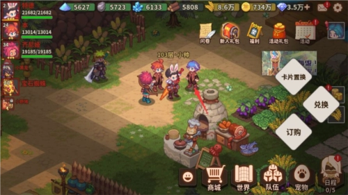 蓝毛小哥所在之处为怪物卡抽取点,在此使用抽卡券或者钻石就能抽取怪物卡,同时卡片置换也在此处进行。
