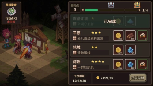 看板,这里是完成每日任务的场所,每天能够做4次。完成后可一次性获取大量基础建材。要是满足第二个和第四个任务,还能得到宝箱。需要留意的是:看板五星难度与深渊层数相关联,要是挑战远超自身战力的任务,五星任务打起来会相当困难哦。