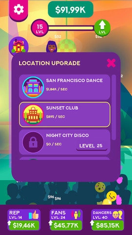5、置身于这款游戏里,你既能领略充满动感的舞曲,跟随节拍摇身一变成为DJ界的王者,又能够施展自己的商业智慧,想尽办法赚取更多金币。
