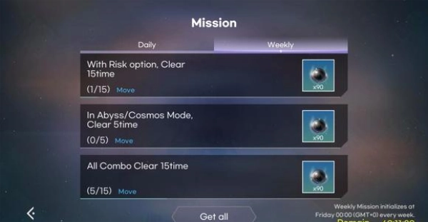 点击菱形可实现收起或展开操作,展开后再次点击任务界面,就能查看任务详细信息。若找不到相应位置,点击蓝色“move”即可直接跳转。每日任务似乎能玩尚未购买的曲目,任务完成后曲目会再次被锁定。